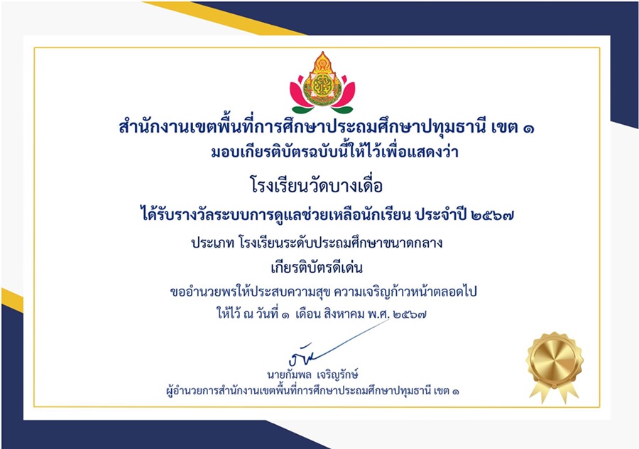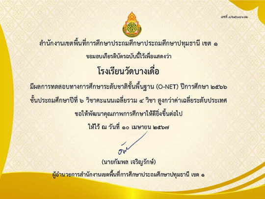 โรงเรียนวัดบางเดื่อ สพป.ปทุมธานี เขต 1 จัดการเรียนการสอนในระดับชั้นอนุบาลถึงชั้นประถมศึกษาปีที่ 6