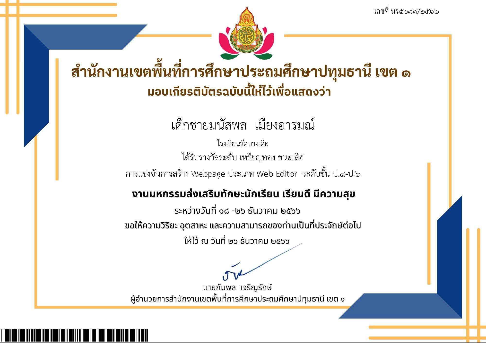ชนะเลิศ การแข่งขันการสร้าง Webpage ประเภท Web Editor ระดับชั้น ป.4-ป.6