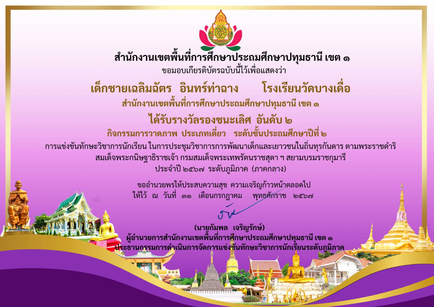 รางวัลรองชนะเลิศ อันดับ ๒ กิจกรรมการวาดภาพ ประเภทเดียว