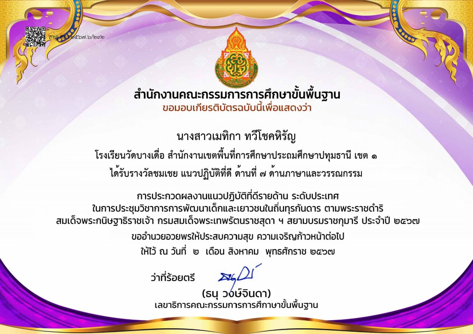 รางวัลชมเชย แนวปฏิบัติที่ดี ด้านที่ ๗ ด้านภาษาและวรรณกรรม